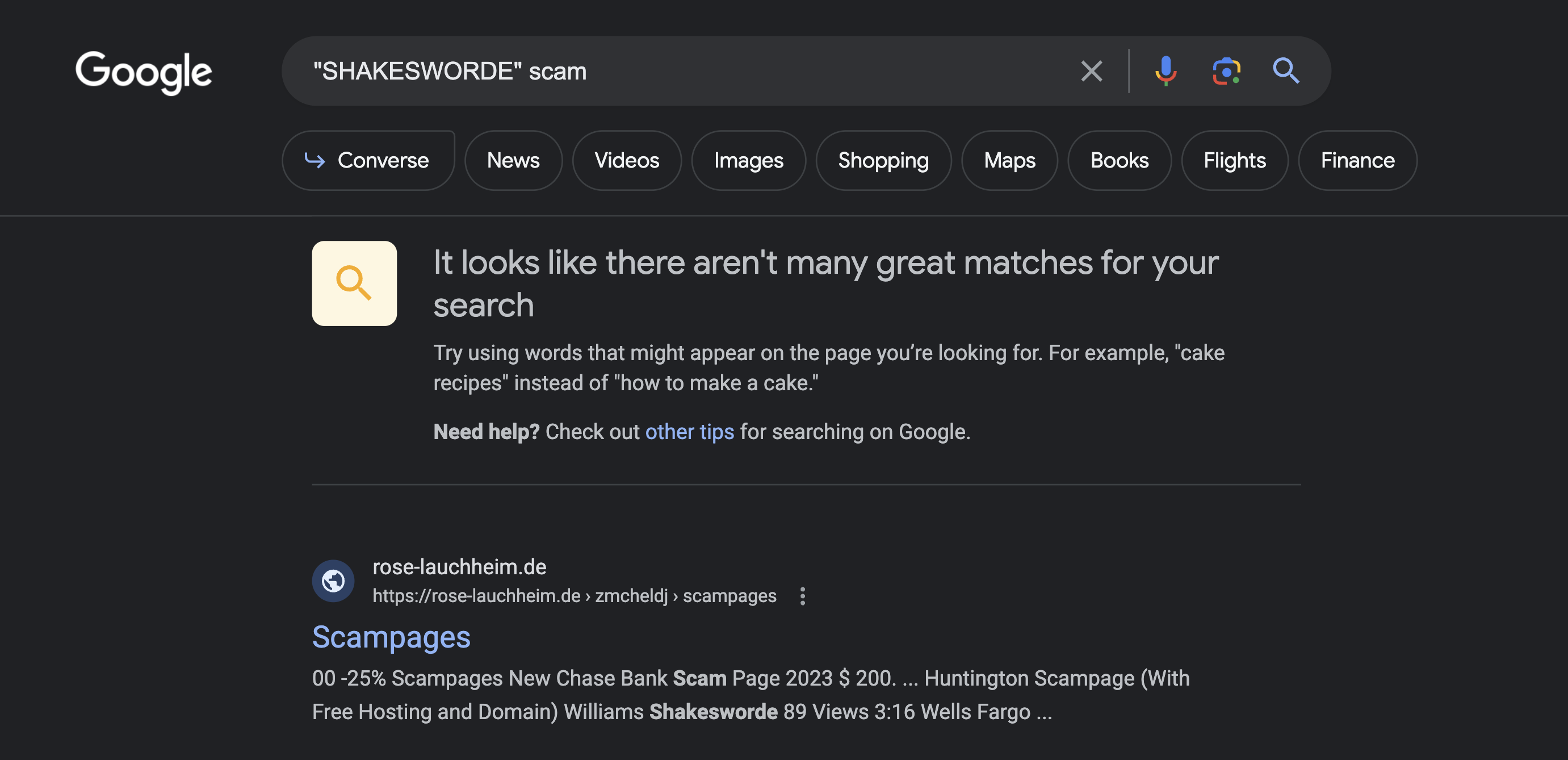 The page from the result - https://rose-lauchheim.de/zmcheldj/scampages.html as well as the root domain https://rose-lauchheim.de are down.